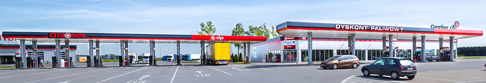 Dyskont paliwowy wyposażony jest w 5 2-stronnych dystrybutorów wieloproduktowych, 1 dystrybutor z autogazem, 9 stanowisk do szybkiego tankowania samochodów ciężarowych, 4 dystrybutory z AdBlue, ładowarkę do samochodów elektrycznych. Ponadto obiekt oferuje podróżnym kantor wymiany walut, kabiny prysznicowe (9, w tym jedna dla osób niepełnosprawnych), toalety (20 kabin), pralnię, suszarnię oraz wifi.